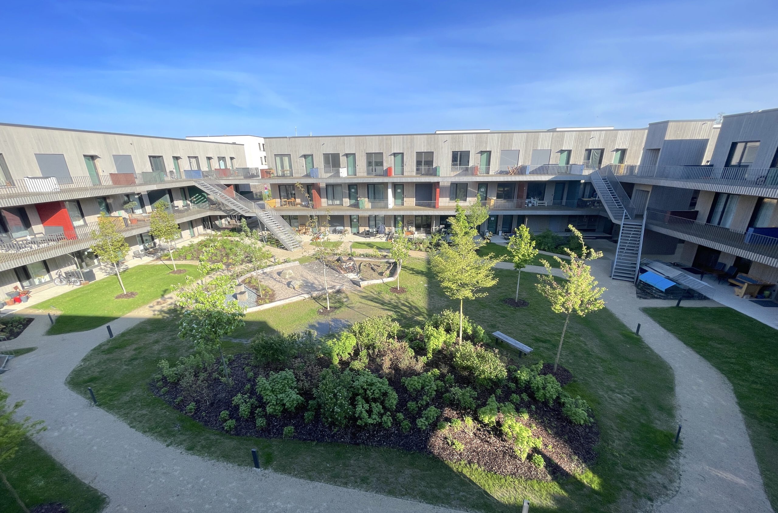 Die Innovatio (Heidelberg/Essen) hat mit dem Franklin Village ein lebendiges Wohnquartier konzipiert, das den Mehrgenerationengedanken in sich trägt. Was dort entstanden ist, wird für uns charakterisiert durch die Themen Heimat, Identifikation, Vielfalt, lebendiges Miteinander, sorgende Gemeinschaft, Teilhabe und eine umfassende Nachhaltigkeit. Man könnte auch sagen, ein „Dorf in der Stadt“. So ist ein Lebensraum entstanden, der ganz unterschiedlichen Wohnbedürfnissen entspricht und emotionale Identifikation ermöglicht – einen Ort an dem man sich „zu Hause“ fühlt. Neben einer hohen architektonischen Qualität braucht es dazu auch Räume, die Beziehung und Kommunikation ermöglichen, d.h. einladende Gemeinschaftsflächen. Lebendigkeit entsteht für uns darüber hinaus durch einen Mix an Bewohnern, der eine lebendige Vielfalt widerspiegelt und alle Generationen umfasst.